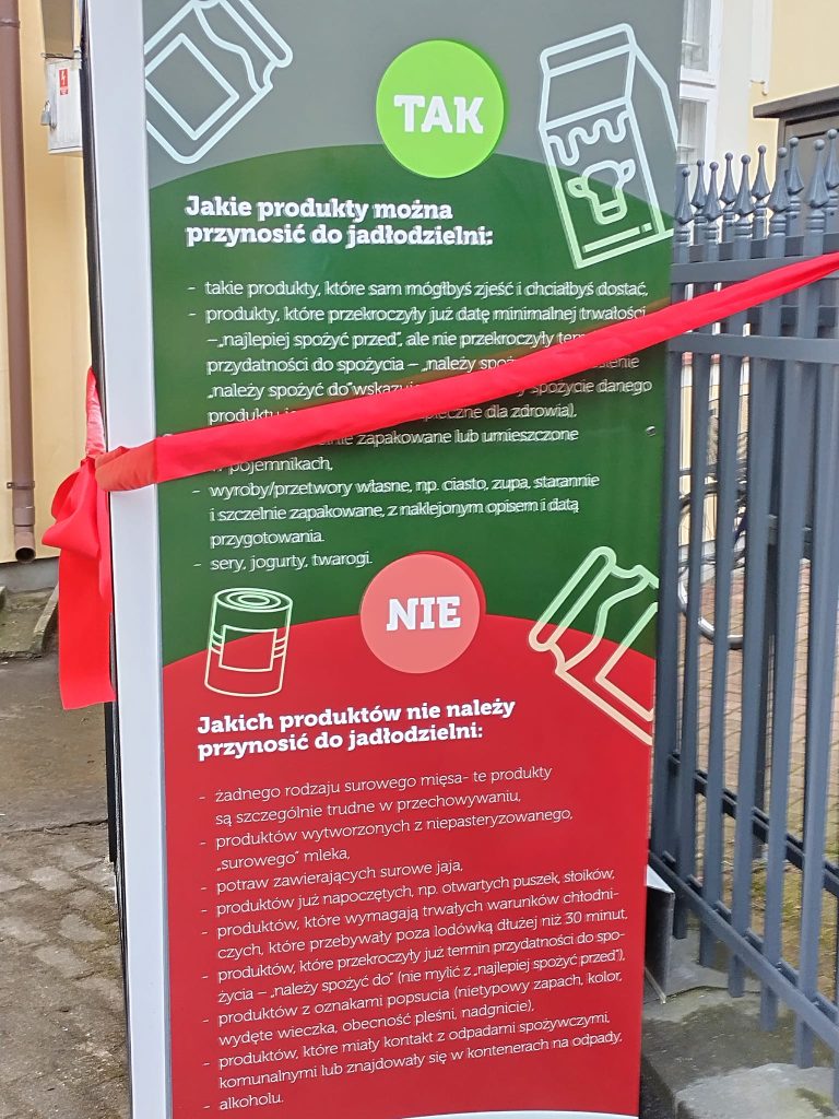 W jadłodzielni można zostawiać produkty zapakowane lub w pojemnikach, takie, które nadają się do spożycia.
