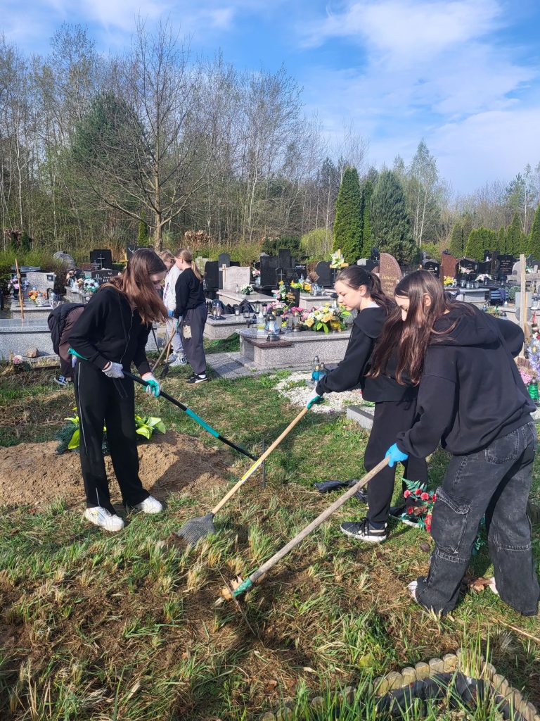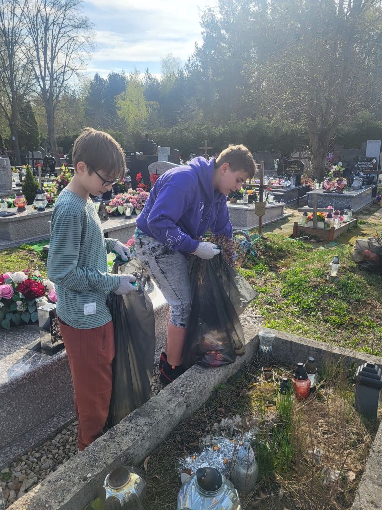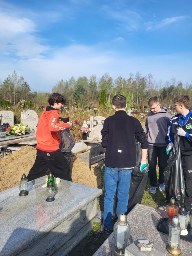 Młodzież jak zwykle nie zawiodła. Z zapałem sprzątali groby. Uczniowie po pracy i uprzątnięciu miejsc spoczynku zapalili znicze, żeby uczcić pamięć osób zmarłych.